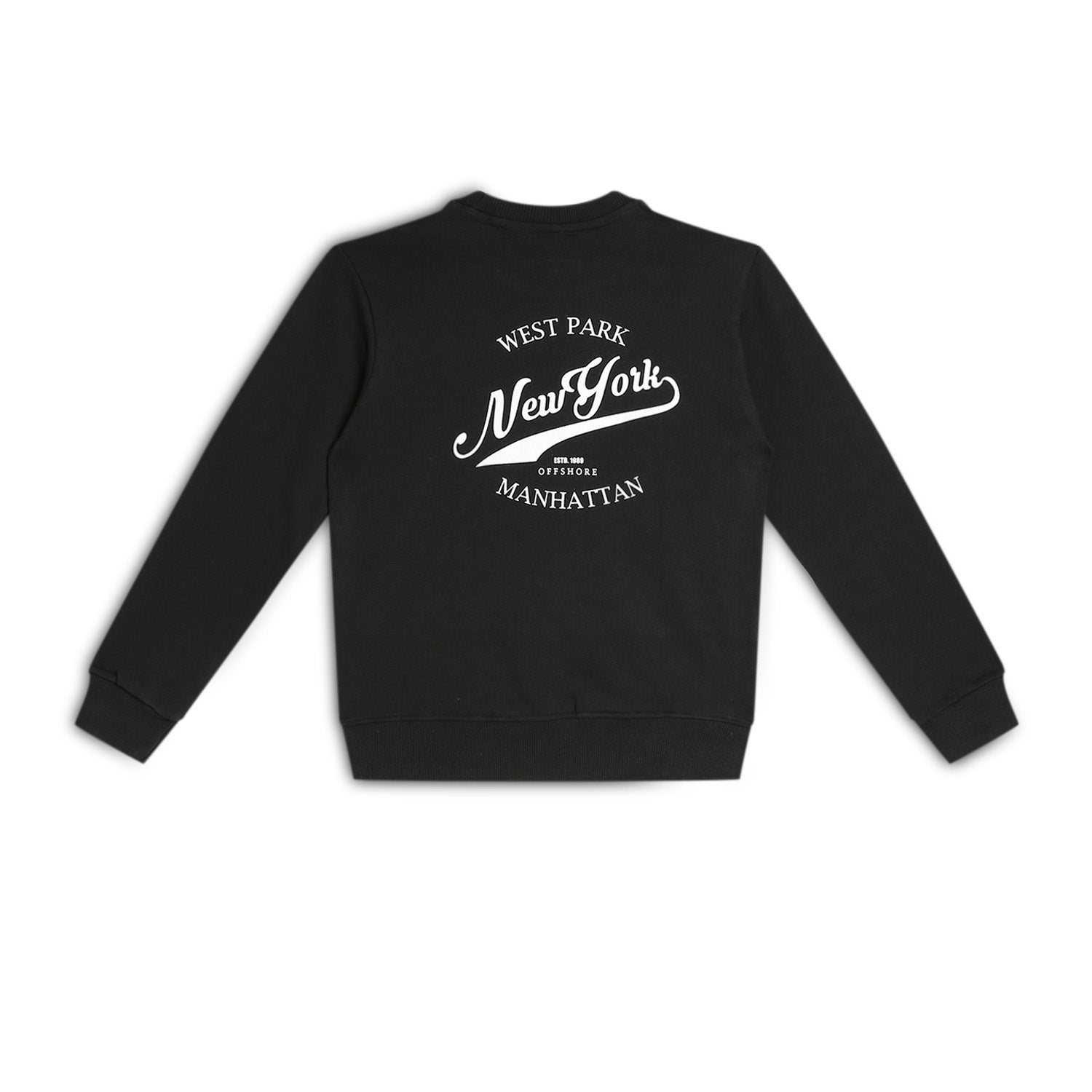 Boys Fleece Printed Round Neck Sweatshirt | Black