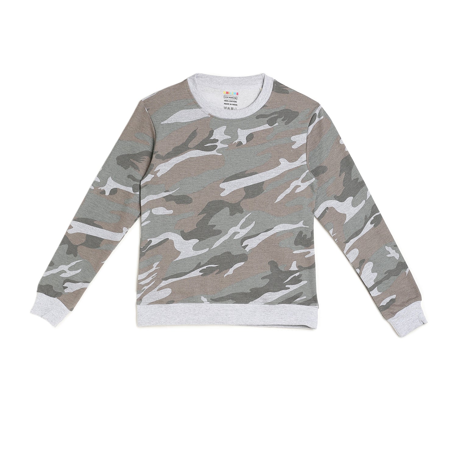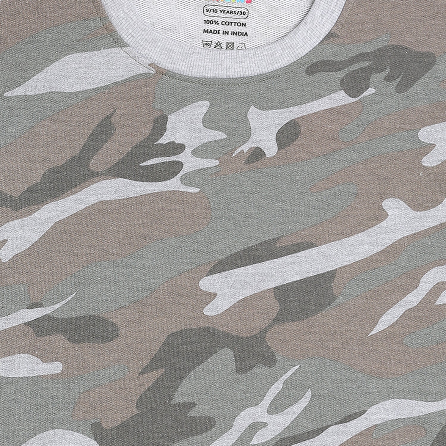 Boys Fleece Printed Round Neck Sweatshirt | Grey Camouflage