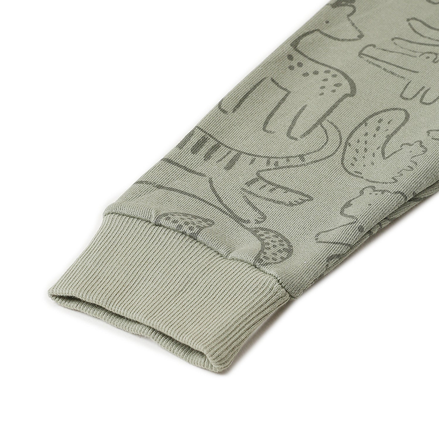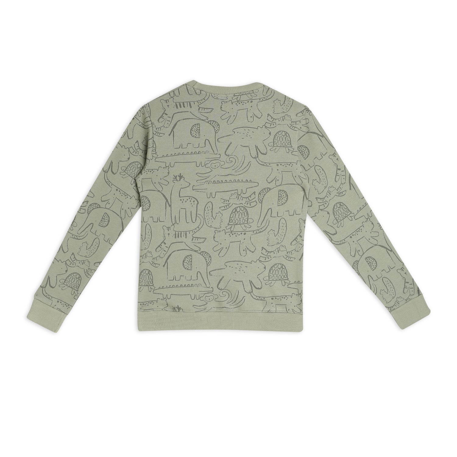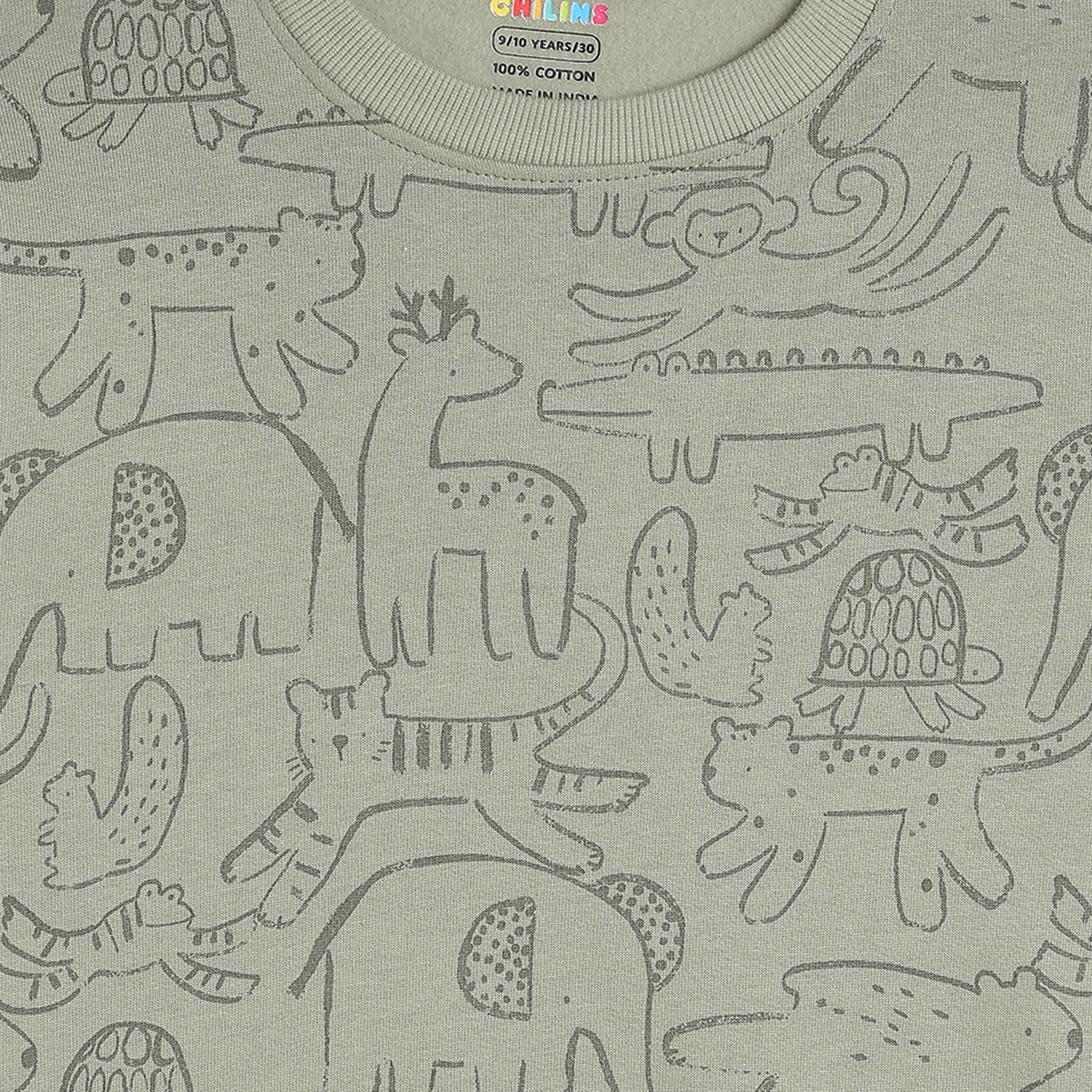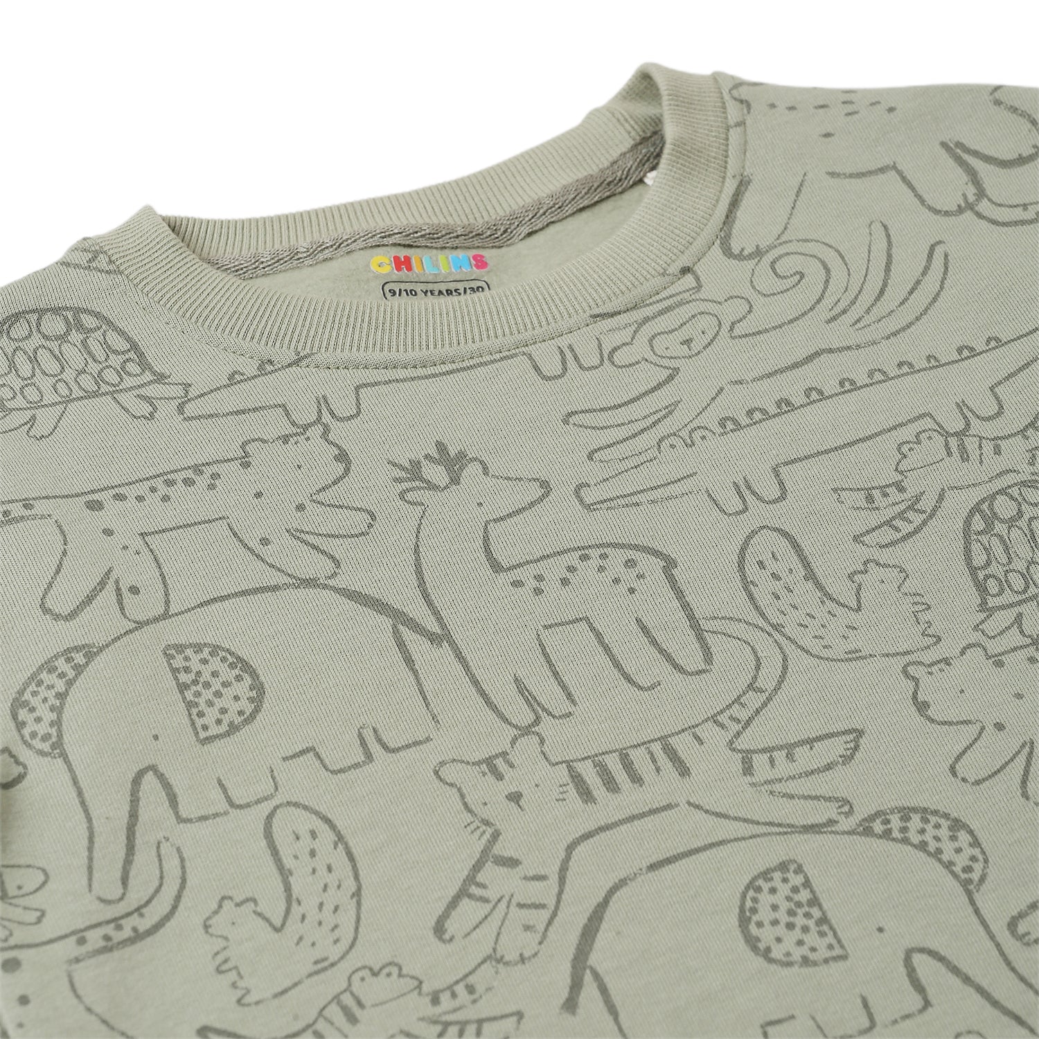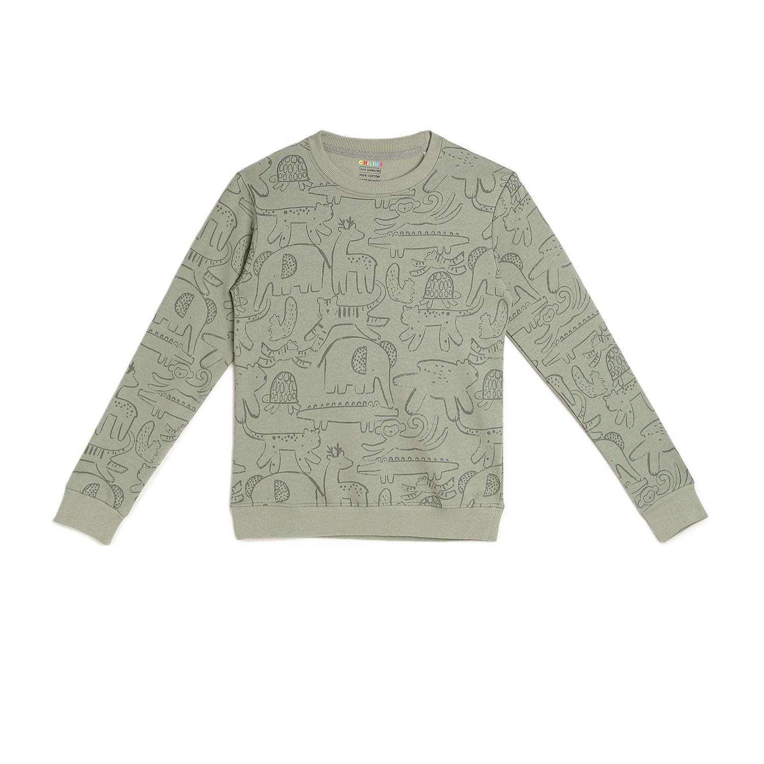 Boys Fleece Printed Round Neck Sweatshirt | Mehandi Animal Cartoon Print