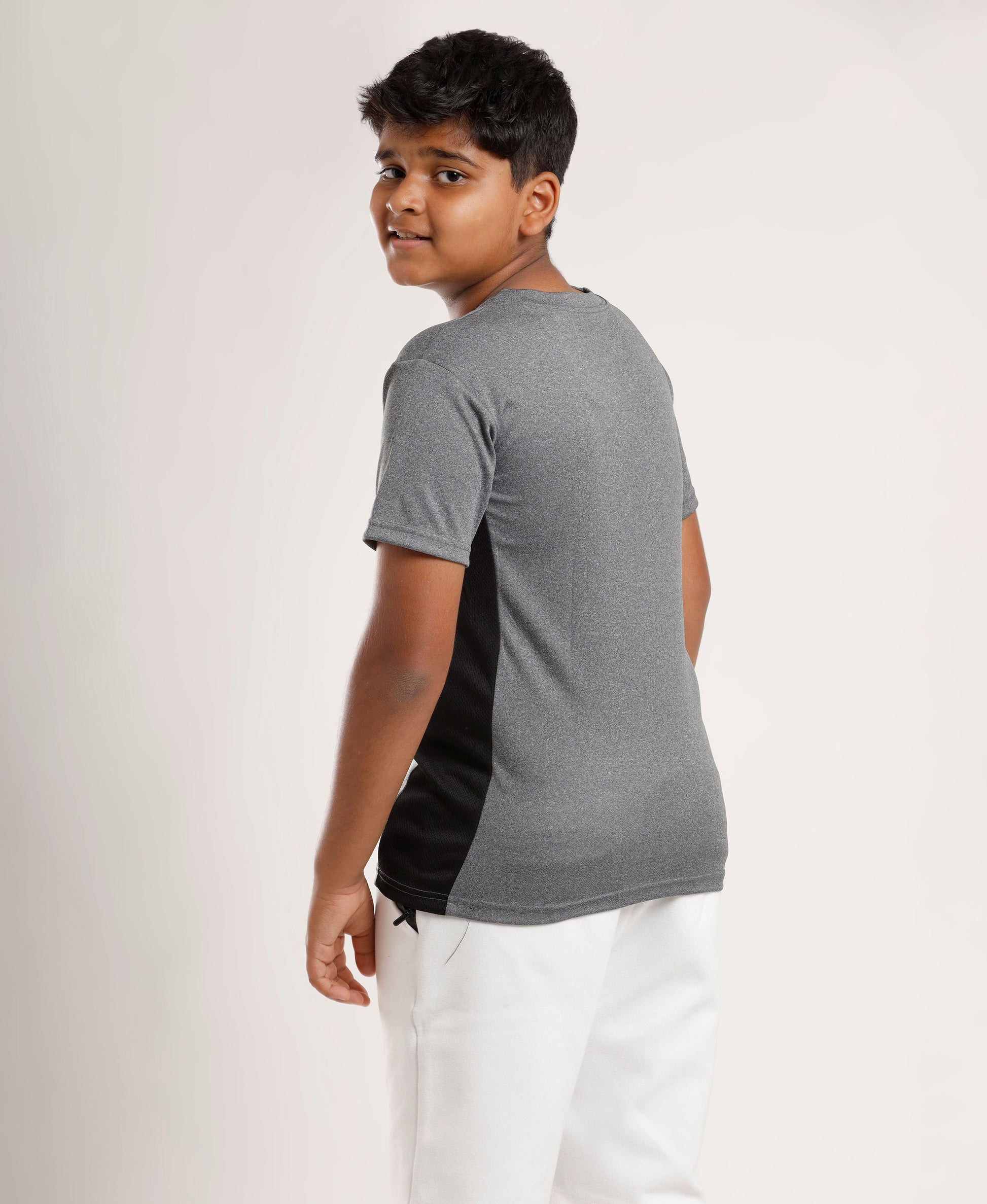 Boys' Grey Active Dry-Fit Sports T-Shirt with Contrast Side Panels