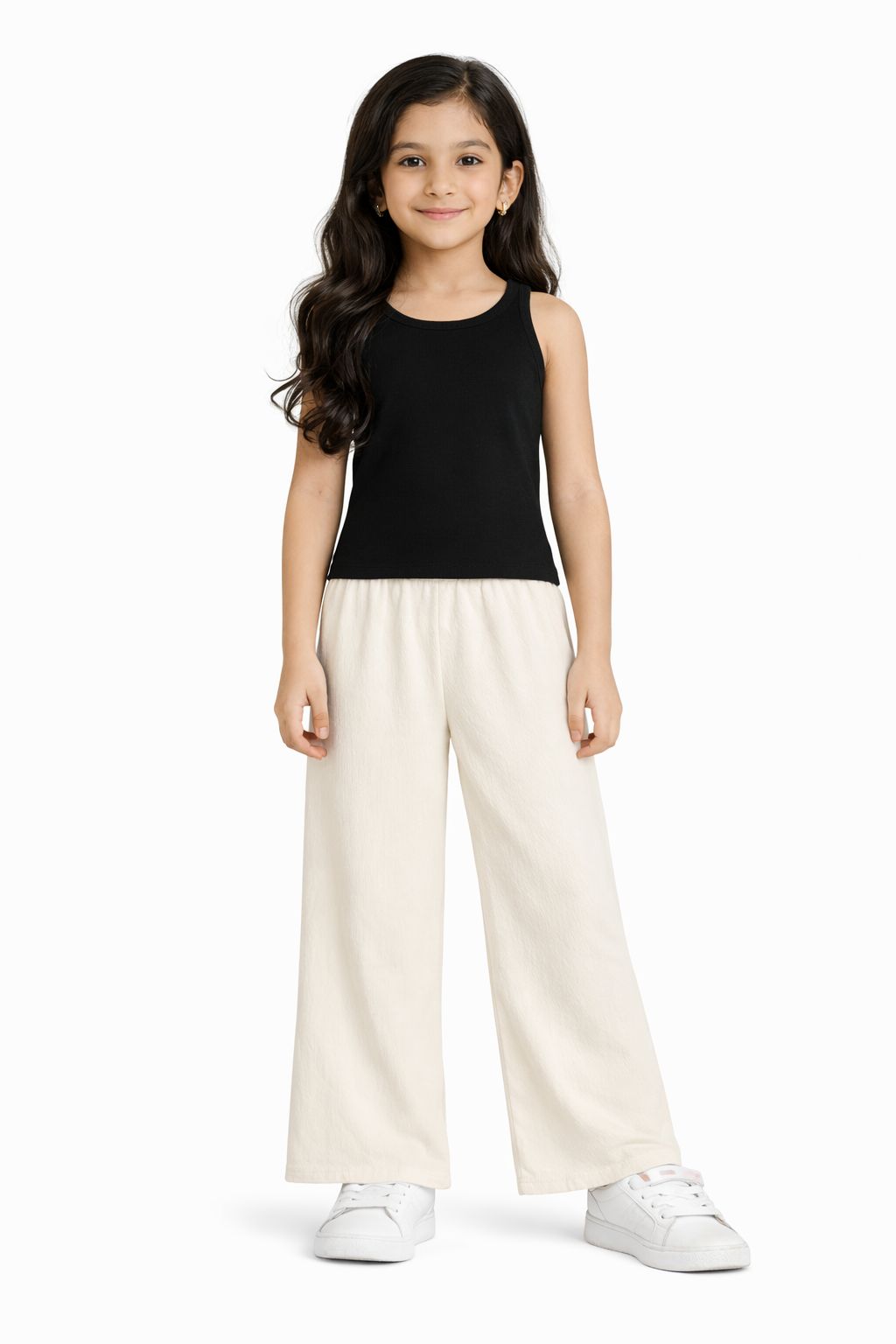 The straight-fit silhouette and elasticated waistband make them a practical choice for everyday wear, school-ready looks, travel, or casual outings. The neutral cream color pairs beautifully with t-shirts, tops, kurtis, or festive wear, making it a wardrobe essential.