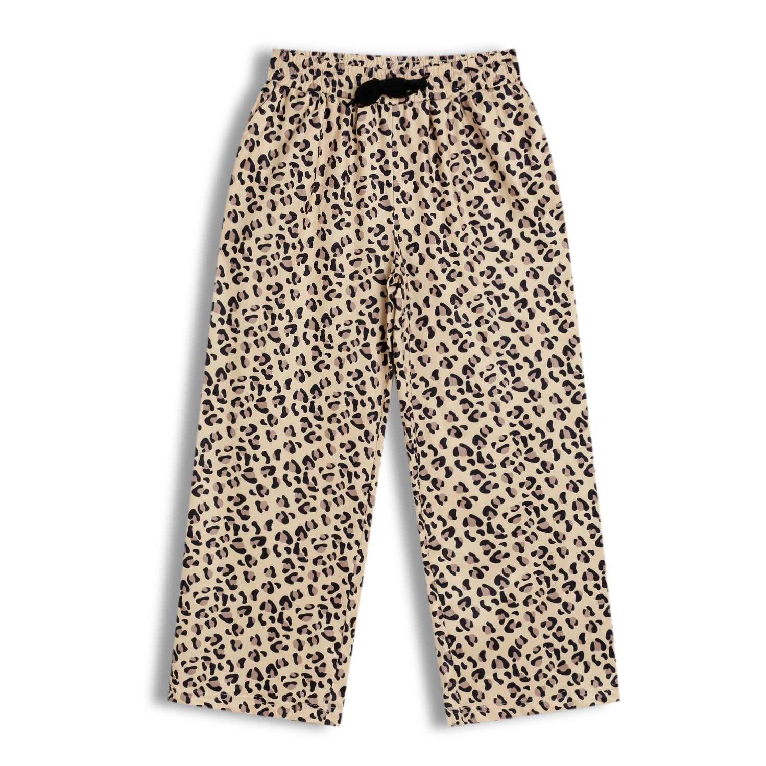 The wide-leg palazzo silhouette offers a breezy, relaxed feel, while the elasticated waistband with drawstring ensures a secure yet flexible fit. Finished with a trendy leopard print, this palazzo pairs perfectly with t-shirts, tops, or festive blouses—making it ideal for casual outings, travel, lounging, or everyday wear.