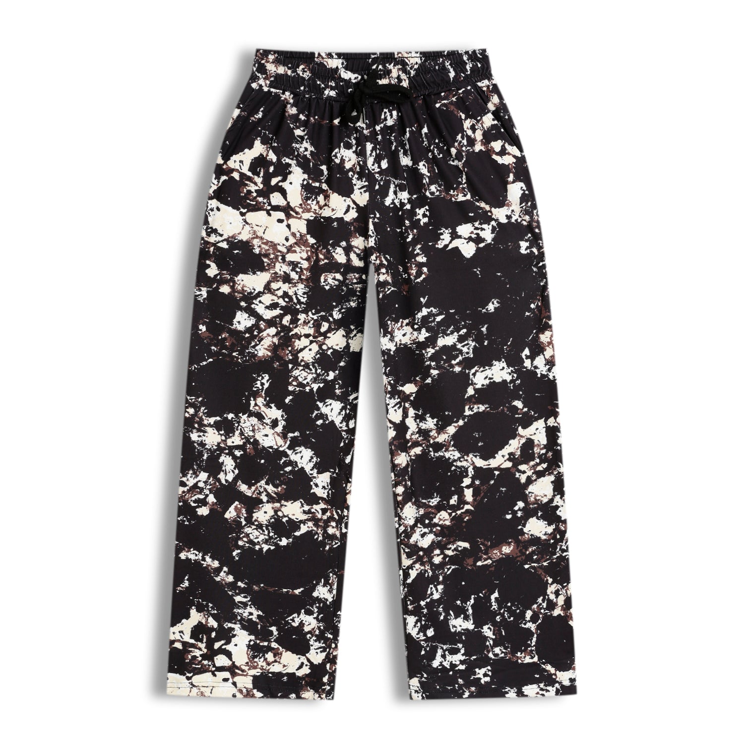 Featuring a trendy abstract print on a black base, this palazzo brings a modern edge to casual dressing. The elasticated waistband with drawstring provides a flexible fit, while the wide-leg cut ensures a relaxed, breezy feel. Pair it with t-shirts, tops, or tunics for casual outings, travel, or everyday wear.