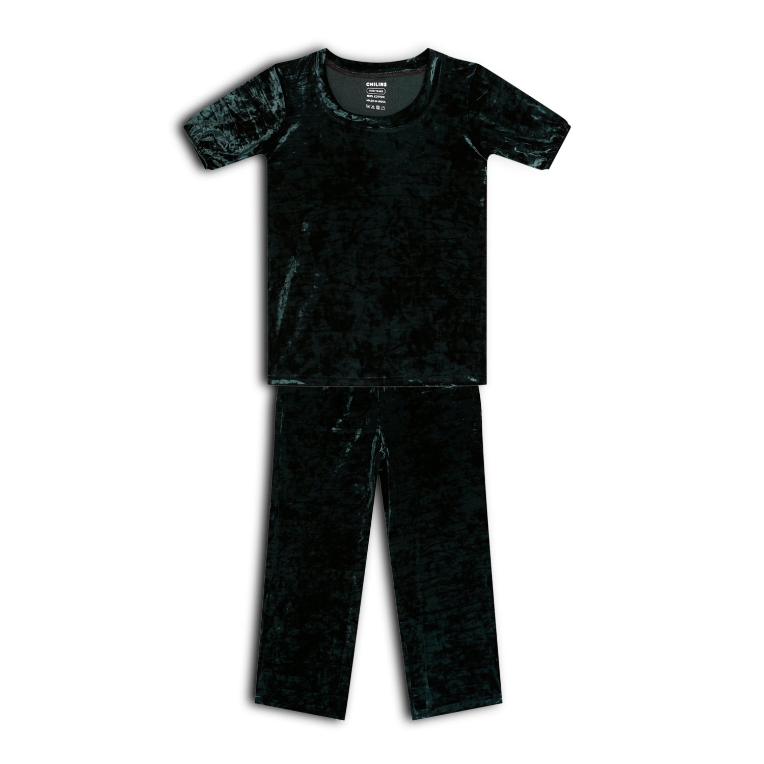 CHILINS Girls Velvet Co-Ord Set | Dark Green Top & Pants Set for Kids