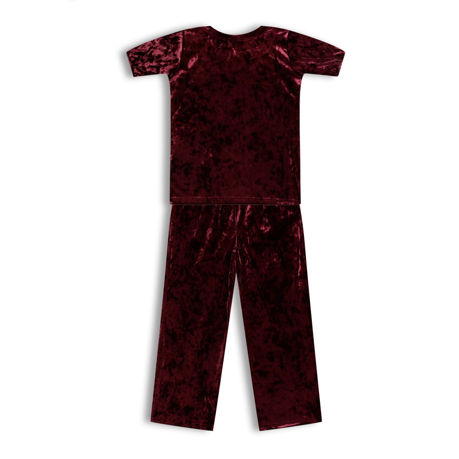 CHILINS Girls Velvet Co-Ord Set | Maroon Top & Pants Set for Kids