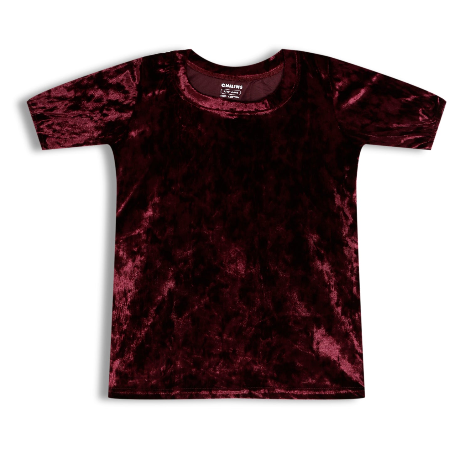CHILINS Girls Velvet Top | Maroon Short Sleeve Party Wear Top