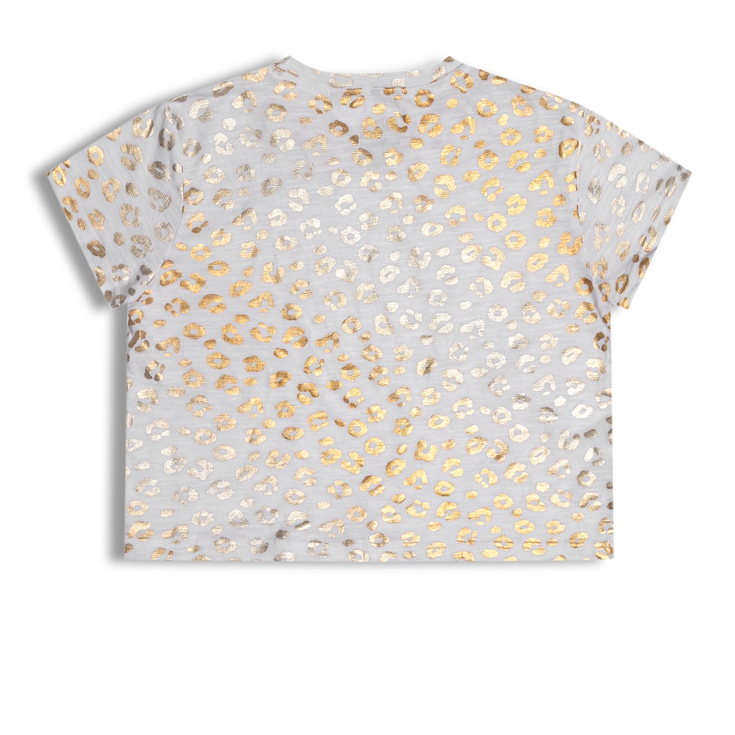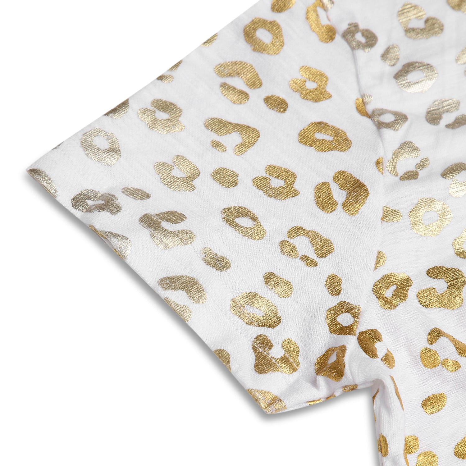 CHILINS Girls White & Golden Animal Print Cotton Crop Top