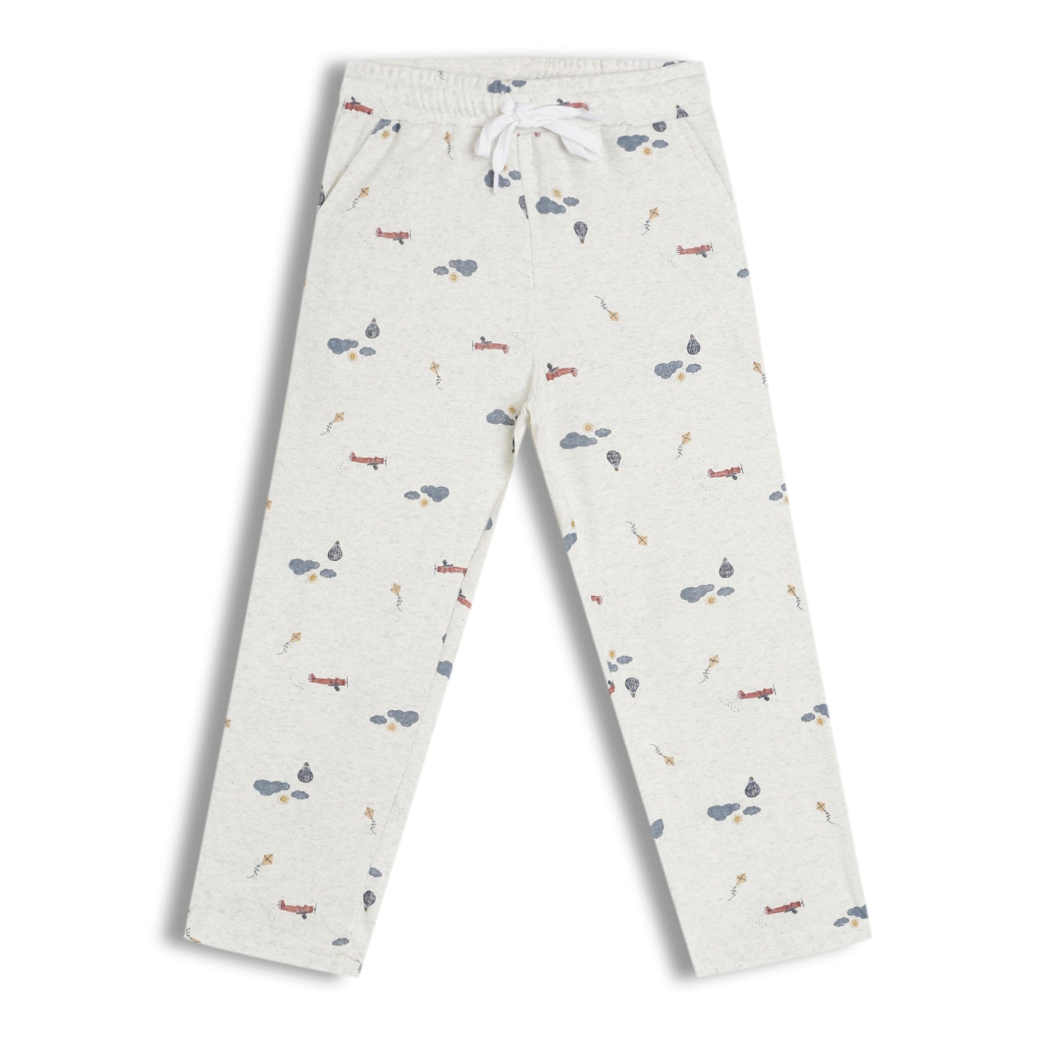 CHILINS Kids Pure Cotton Printed T-Shirt & Pyjama Set | Cream Comfort Nightwear