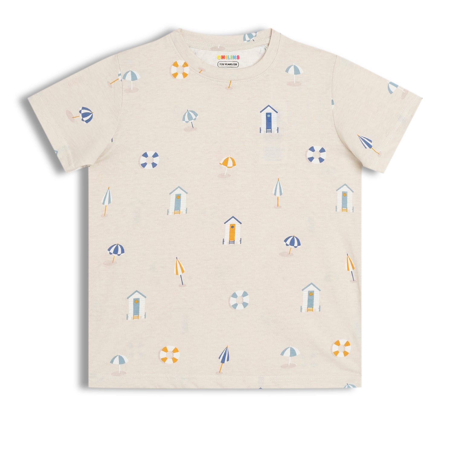 CHILINS Kids Pure Cotton Printed T-Shirt & Pyjama Set | Cream Comfort Nightwear Set