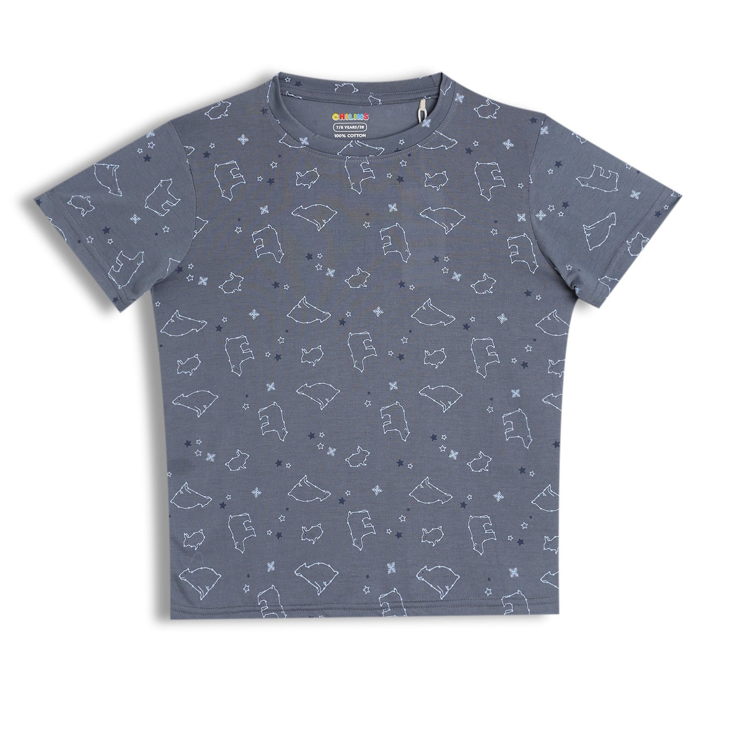 The subtle bear outline print on a soothing grey base gives this co-ord set a modern, minimal look that works perfectly for playtime, home wear, or casual outings. A relaxed fit ensures easy movement and lasting comfort.