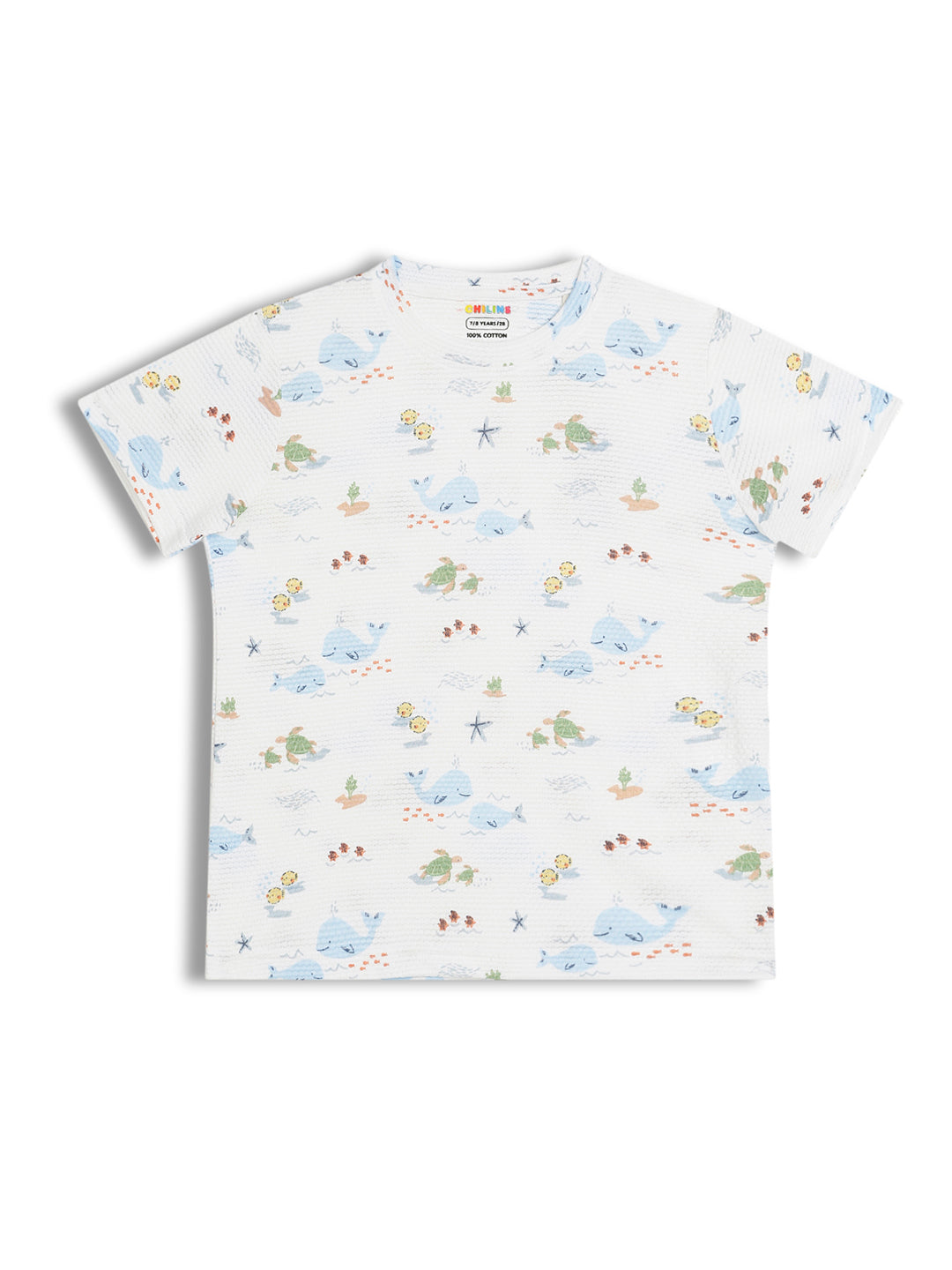 CHILINS Kids Pure Cotton Printed T-Shirt & Shorts Set | Ocean Life Print Co-Ord Set