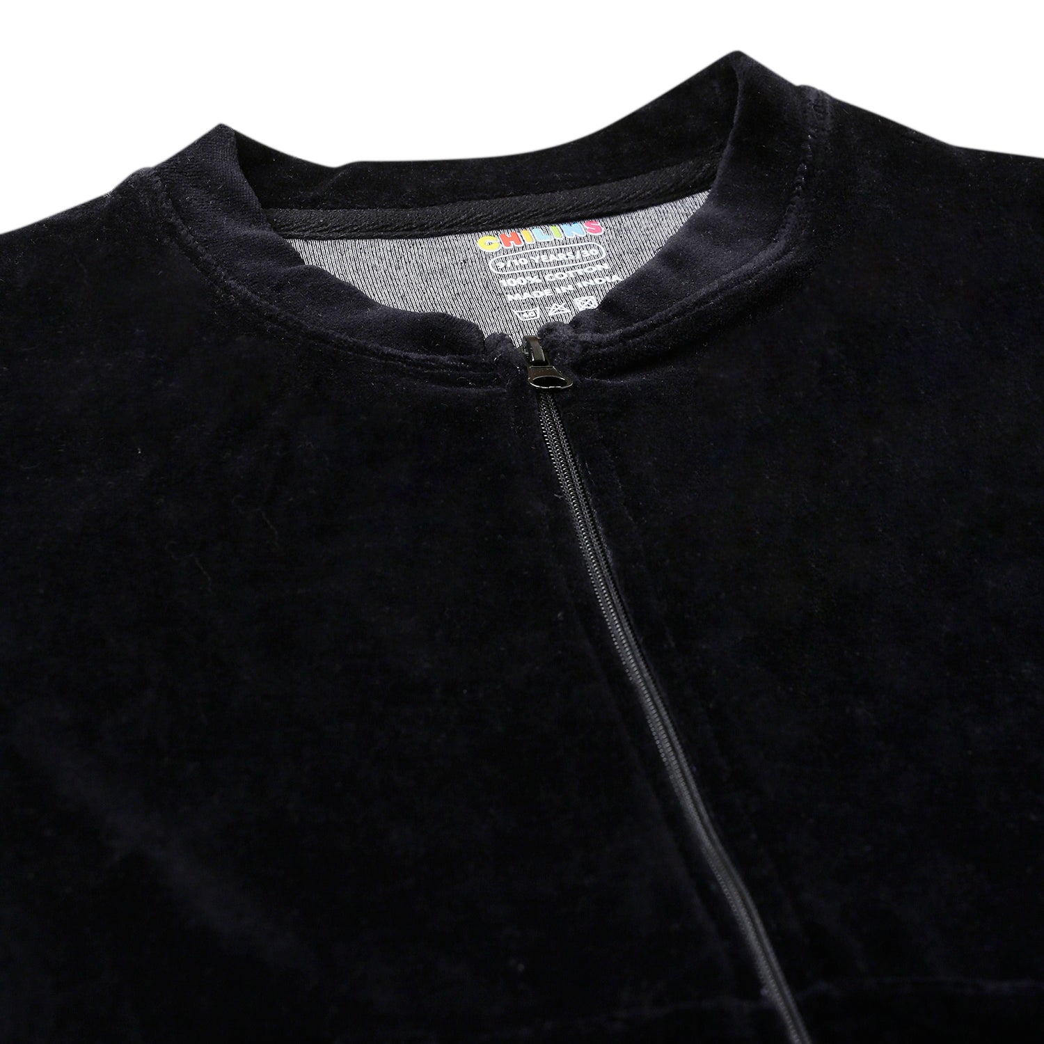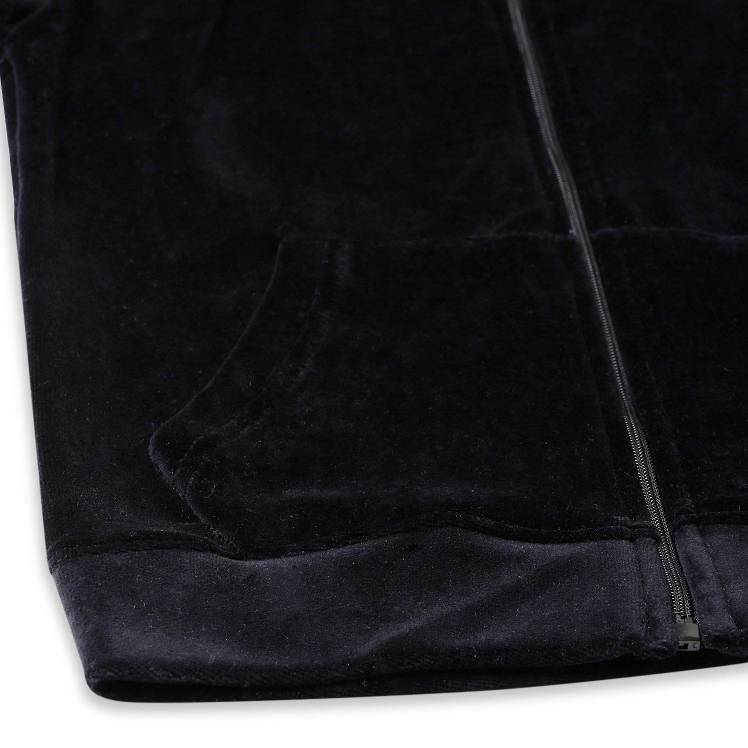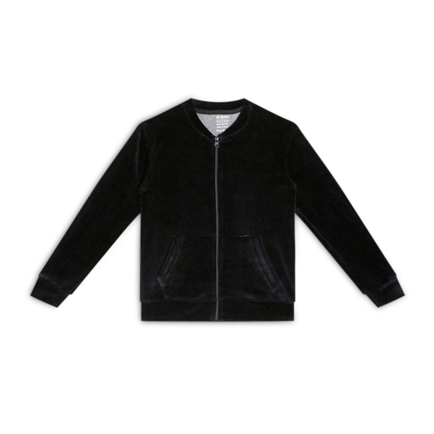 Girls Self Design Velvet Party Jacket with Zipper – Black (Without Hood)