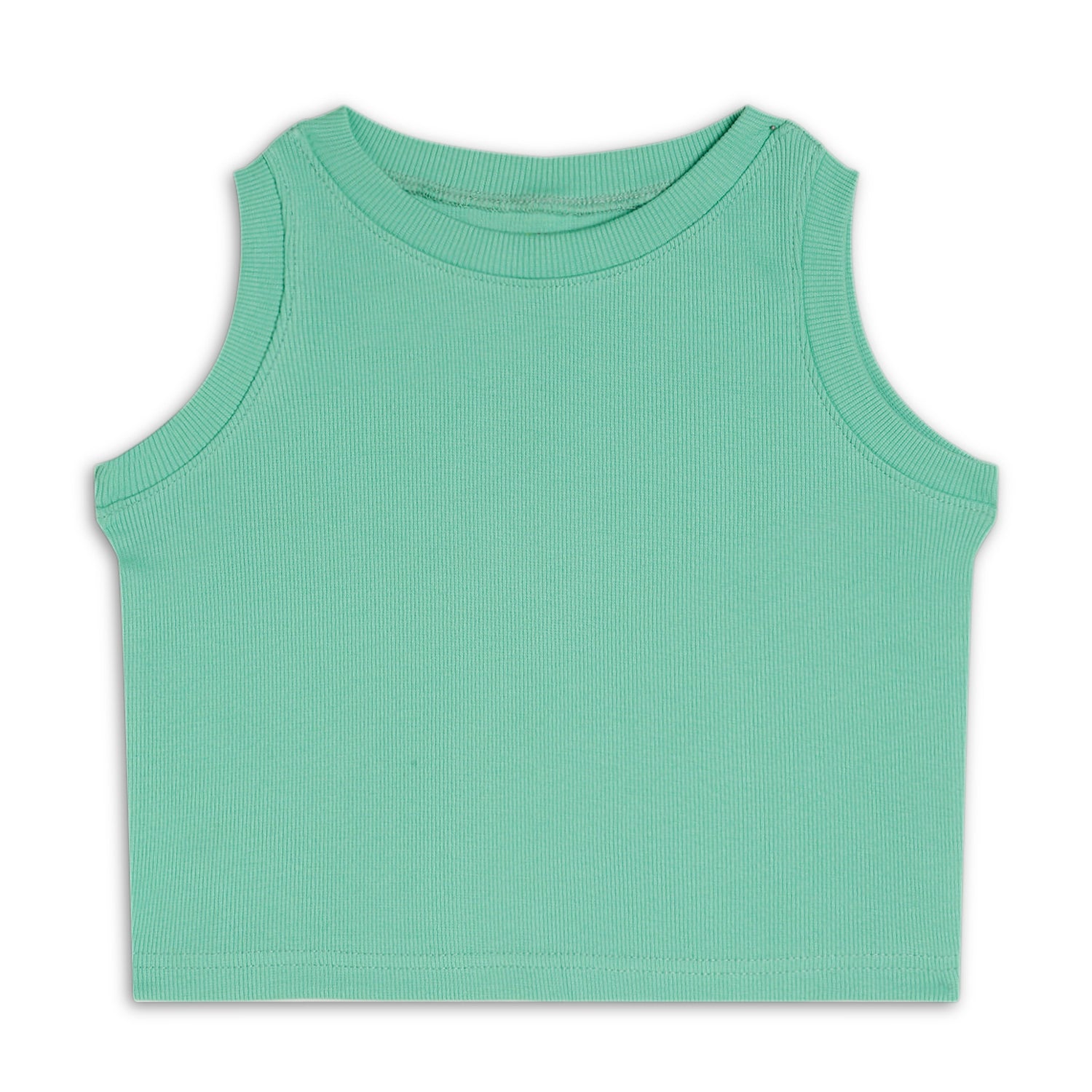 Girl's Solid Crew Neck Ribbed/Knitted Sleeveless Stretchable Slim Fit Crop Tank Top