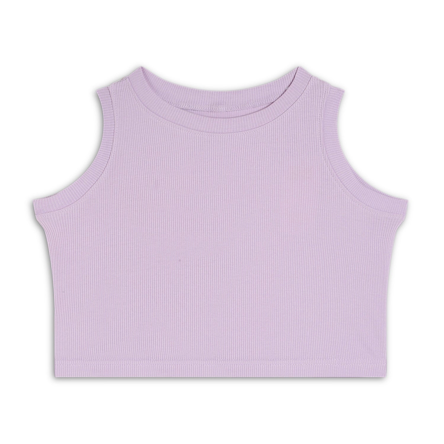 Girl's Solid Crew Neck Ribbed/Knitted Sleeveless Stretchable Slim Fit Crop Tank Top Lyril