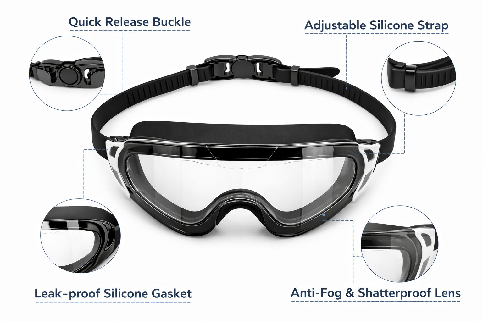 High-quality lenses provide clear underwater visibility so kids can swim confidently.